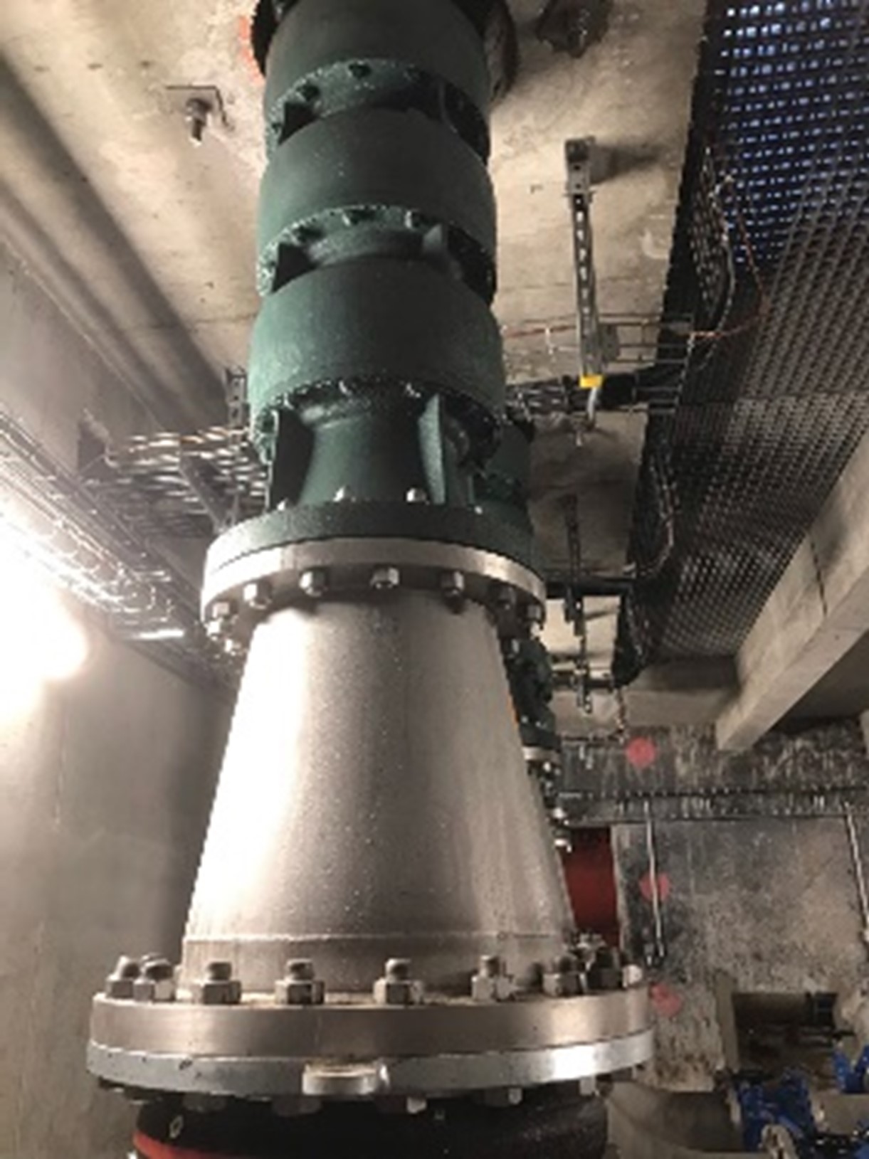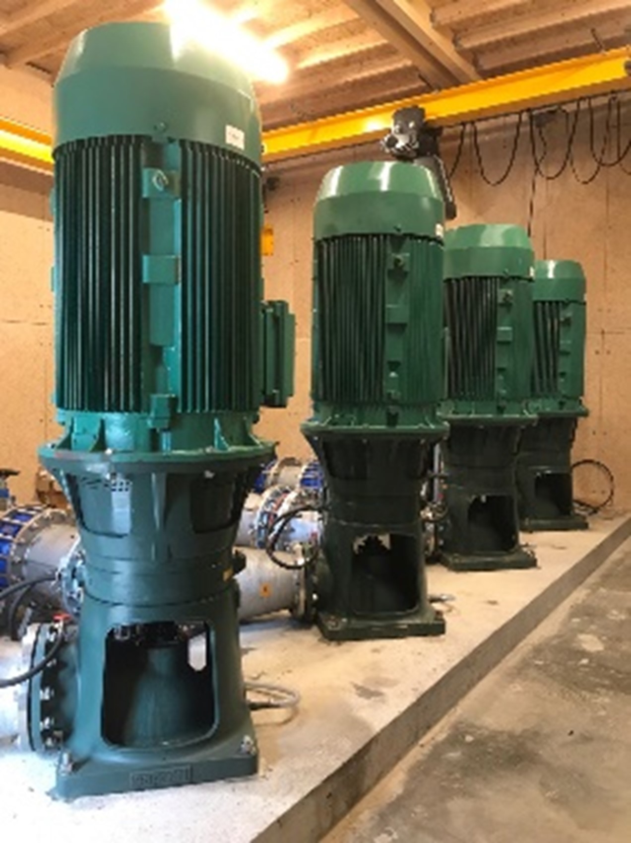 عدد 4 مجموعات مضخات رأسية ذات محاور، تحتوي على محرك كهربائي بقدرة 200 كيلو وات 4 أقطاب تستخدم كل مجموعة منها في إصدار الغرفة الجافة.